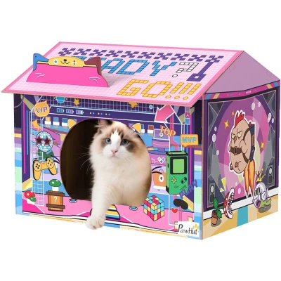 PawHut Cardboard Cat House with Scratching Board & Catnip, Gaming Style