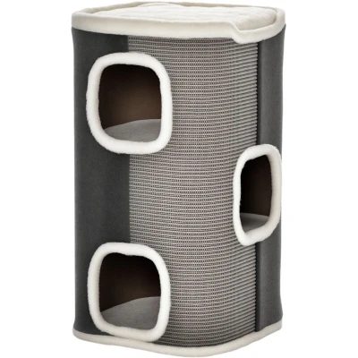 General description This sisal-covered barrel tower from PawHut will be your cat's new favourite spot. It's the perfect place to play, sleep, and hide. Three den areas are connected via two large holes inside, giving them freedom to move. The top deck is covered with soft and snuggly material, perfect for relaxing and sleeping. The scratching pads will help sharpen their claws, so your furniture no longer has to be the victim. This is something different to liven up their days and a safe space to unwind at night. Technical specifications Colour: Grey and White Material: Particleboard, Short Plush, Sisal, Lamb fleece Overall Dimension: 40L x 40W x 74H cm Door Hole Size: Ф18 cm Inside Hole Size: Ф18 cm Cushion dimensions: 37L x 37W cm (on top perch) Suitable for cats: under 4.5 kg Other information No assembly required Tough particle board structure is safe for your cat Double-material double-color design on the surface