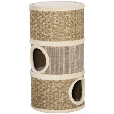 PawHut Cat Scratching Barrel Kitten Tree Tower for Indoor Cats Pet Furniture Climbing Frame Covered with Sisal and Seaweed Rope Cozy Platform Soft Plush