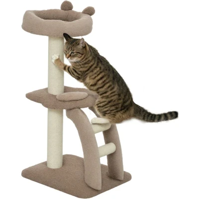 General description This PawHut cat tower provides outdoor-like fun indoors without causing damage. With three tiers to climb, scratching posts to protect your furniture, and hanging toy balls for play, it keeps cats entertained. The plush-covered bed is raised for easy relaxation, allowing them to watch their surroundings comfortably. Lightweight and compact, it fits anywhere, creating a wonderful pet haven. Technical specifications Colour: Brown and white Materials: Particle board, cashmere (100% polyester), and jute Overall dimensions: 88H x 48W x 40D cm Bed dimensions: 7H x 40W x 34D cm, 5H x 34W x 28D cm (Inside) Platform dimensions: 37L x 37W cm Scratching post diameter: Φ7 cm and Φ5 cm Ladder dimensions: 41L x 19W x 9D cm Base dimensions: 48W x 40D cm Maximum weight capacity: 5 kg Other information Three-tier layout offers different play levels for cats Includes a cosy cat house for restful naps Perch and stairs enhance climbing fun Hanging ball simulates playful activity