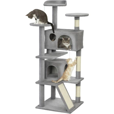 PawHut Cat Tree, 138cm Tower with Sisal Scratching Posts and Pad, Bed, Condos, Platforms, Toy Balls, Anti Tip Kit, Kitten Activity Centre for Indoor, Light Grey