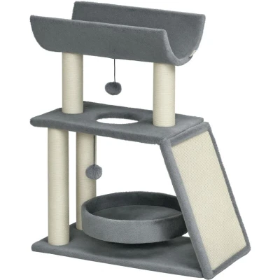 PawHut Cat Tree for Indoor Cats with Scratching Posts Pad, Kitten Tower Bed Perch Ball Toy, 60 x 30 76 cm, Light Grey
