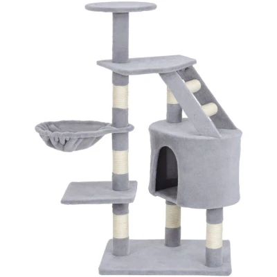 PawHut Cat Tree Kitten Scratching Post Scratch Scratcher Climb Activity Center Play House Pet Furniture 125cm (Grey)