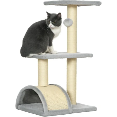 PawHut Cat Tree Tower for Indoor Cats, 72cm Climbing Activity Centre w/Sisal Scratching Post, Pad, Arc Perch, Hanging Ball, Toy Light Grey