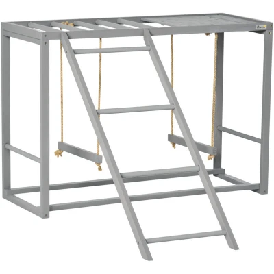 General description Chickens need to play and be entertained to avoid behavioral issues and maintain good health. The PawHut Chicken Activity Play Chicken Coop with Swing Set is designed to enhance their environment, improving their happiness and preventing future problems. This activity center features a zero-tipping construction that remains stable, providing a safe space for your chickens to enjoy. It encourages exercise, strengthens their limbs, and improves their coordination and balance. Technical specifications Colour: Grey Material: Fir Wood Overall Dimensions: 100L x 110W x 70H cm Ladder Dimensions: 99L x 36W cm Perch Diameter: Φ1.8 cm Platform Dimensions: 40W x 40D cm Frame Dimensions: 3L x 2W cm Weight Capacity: 10 kg Item Label: D51-351V00GY Usage Suitable for three to four chickens for simultaneous entertainment Helps exercise small animal limb strength while promoting movement Excellent addition to chicken coop accessories or can be used inside coops Other information