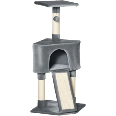General description Treat your pet to this comfortable PawHut cat tree tower, designed to fit in the corner of your room. Featuring a cat house, perch, and ramp, cats will have plenty of space to play and relax. They'll dig their claws into the scratching posts and board, while the toy ball keeps them entertained. Covered with soft plush, it's comfortable on their paws, ensuring they stay cosy. Finished with a stylish appearance, it complements any home decor. Technical specifications Colour: Grey Material: Particle Board, Sisal Ropes, Plush Overall Dimensions: 40L x 40W x 98H cm Condo Dimensions: 35L x 35W x 25H cm Condo Door Size: 22W x 20H cm Top Perch Size: 30L x 30W cm Ramp Size: 38L x 17W cm Scratching Post Size: Ф5.5 cm Usage Suitable for cats under 5 kg Provides a place for pets to play and relax Encourages scratching on designated posts and boards to deter furniture scratching Other information