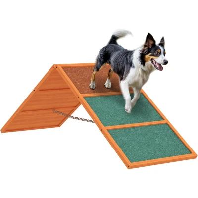 Unleash your pooch's potential with the PawHut Dog Agility Ramp! Tailored for all breeds under 40kg, this adjustable ramp allows you fine-tune the challenge to suit your dog's skill level. Featuring an anti-slip, A-frame surface complete with security bars, it's designed for secure, thrilling fun. Plus, it folds away effortlessly, making storage a breeze. Specifications: ● Colour: Orange, Brown, Green ● Material: fir wood ● Overall dimensions: 173L x 59W x 66H cm (minimum height) ● Single panel: 106L x 59W cm ● Maximum height dimensions: 123L x 59W x 90H cm ● Minimum tilt angle: 34° ● Chain length: 109 cm ● Weight capacity: 40 kg ● Item Label: D06-260V00OG Features: ● Adjustable height suits various dog sizes and skill levels ● A-frame features a non-slip surface and rails for secure grip ● Foldable design allows compact storage and easy portability ● Quick and simple assembly in just 5-10 minutes ● Supports all dogs up to 40 kg