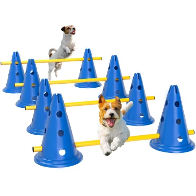 PawHut Dog Agility Equipment Set, Portable Pet Jump Training Kit for Eight Cones, Poles with Carry Bag, Four Piece Adjustable Height Jumping Obstacles, Blue