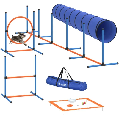 Is your energetic pup bouncing off the walls with boredom? Finding a secure, engaging outlet can be tough, especially with flimsy equipment that doesn't suit your dog's size. The PawHut dog agility training equipment offers a stable, hassle-free solution. With adjustable dog jumps for all breeds and a stable design for indoor or outdoor fun, you can build confidence and create joyful training moments together. Specifications: ● Colour: Orange, Blue, Black ● Material: PE, Oxford Cloth ● High Jump Bar Size: 72W x 93D x 92.5H cm Adjustable Height Range: 8.5H-89H cm ● Jump Ring Size: 72W x 93D x 92.5H cm Adjustable Height Range: 6.5H-56H cm ● Weaving Pole Size: 350W x 68D x 70H cm ● Tunnel Size: 300W x Φ 60 cm ● Marking Block Size: 87W x 87D cm ● Frisbee Size: 18W x 18D cm ● Tennis Ball Size: Φ 6.5 cm ● Foldable Bowl Capacity: 350 ml ● Item Label: D07-066V01OG Features: ● 8-piece set provides complete agility training for all skill levels ● Adjustable jump heights fit any dog size ●