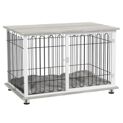 PawHut Dog Crate Furniture, Indoor Kennel Side End Table with Soft Washable Cushion, Lockable Door, for Large Dogs