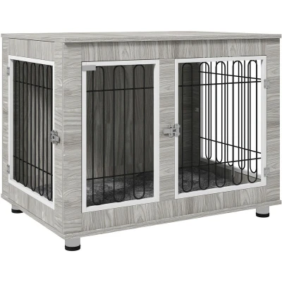 PawHut Dog Crate Furniture, Side End Table, Indoor Kennel with Soft Washable Cushion, Wire Mesh, Large Top, for Dogs, 106 x 74 81.5, Grey