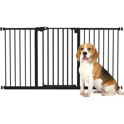 PawHut Dog Gate Stair Pressure Fit Pets Barrier Auto Close for Doorway Hallway, 74 148cm Wide Adjustable, Black
