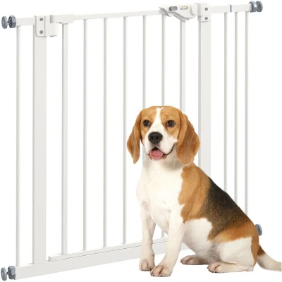 PawHut Dog Gate Stair Pressure Fit Pets Barrier Auto Close for Doorway Hallway, 74 87cm Wide Adjustable, White
