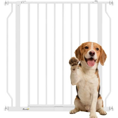 PawHut Dog Gate Wide Stair w/ Door Pressure Fit, 75 85W cm, White