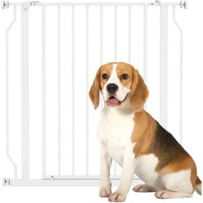 PawHut Dog Gate Wide Stair w/Door Pressure Fit Pets Barrier for Doorway, Hallway, 76H x 75 85W cm White