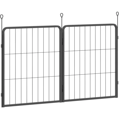 General description Add this two-piece PawHut expansion pack to your existing pet playpen, increasing their space for more roaming, playing, and relaxing. It's made of solid steel, anchored with three ground stakes, providing a stable and secure setup that keeps small dogs safe, indoors or outdoors. When not in use, simply fold it flat for compact storage, ready to be used again. Technical specifications Colour: Black Material: Steel Single panel dimensions: 60H x 56W x 1.5D cm Ground stake length: 70 cm Folded dimensions: 60L x 58W x 3D cm Bar spacing: 19H x 5W cm Item label: D06-253V00BK Other information Assembly required Three ground stakes enhance stability Foldable design simplifies storage