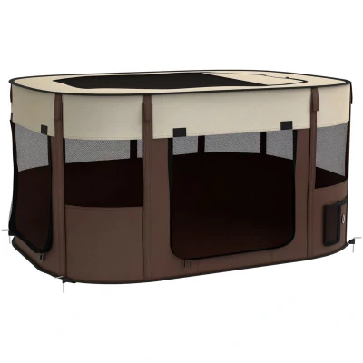PawHut Dog Pen, Pet Playpen, Portable Foldable Cat Playpen with Storage Bag for Puppies, Rabbits, Kittens, Guinea Pigs, 114 x 89 59cm Brown