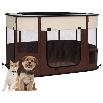PawHut Dog Pen, Pet Playpen, Portable Foldable Cat Playpen with Storage Bag for Puppies, Rabbits, Kittens, Guinea Pigs, 94 x 74 60cm Brown