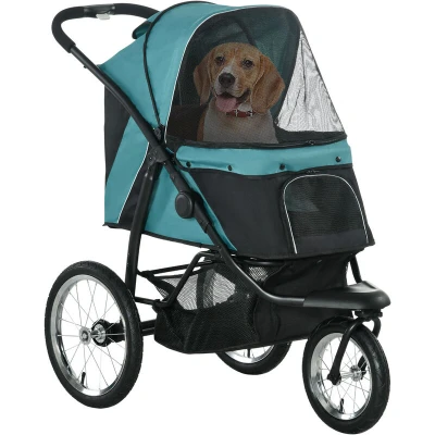 PawHut Dog Pram Stroller Jogger Foldable Pet Pushchair for Medium, Small Dogs, w/Rubber Wheels, Washable Cushion Dark Green