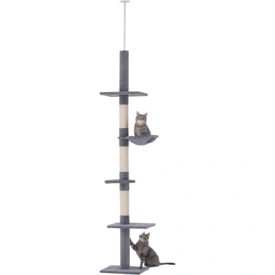 PawHut Floor to Ceiling Cat Tree for Indoor Cats 5 Tier Kitty Tower Grey
