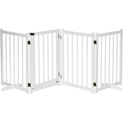 PawHut Freestanding Pet Gate for Small and Medium Dogs, Wooden Foldable Dog Safety Barrier with 4 Panels, 2 Support Feet, 80 cm Tall Doorways, Stairs White