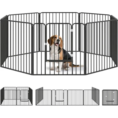 PawHut Heavy Duty Dog Playpen, 8 Panels Pen, 80cm Height Pet Playpen Exercise with Door, for Small and Medium Dogs