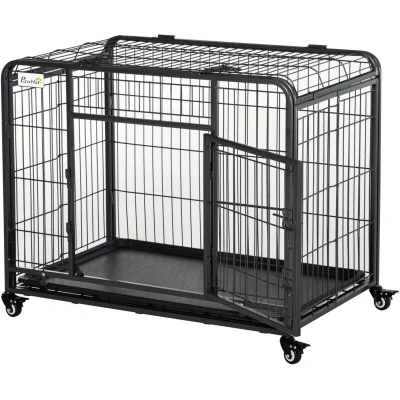 PawHut Metal Dog Cage Kennel Locking Door & Wheels Removable Tray Openable Top For Medium Pets 94 x 58 69.5 cm
