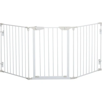 PawHut Pet Safety Gate 3 Panels Playpen Metal Fence with Walk Through Door White