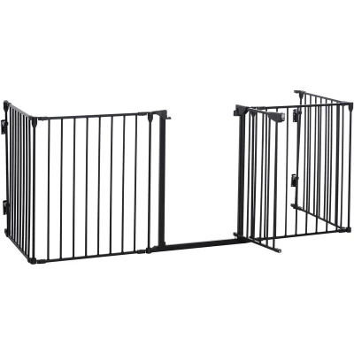 PawHut Pet Safety Gate 5 Panels Playpen Metal Fence w/ Walk Through Door Black