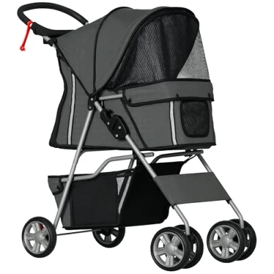 PawHut Pet Stroller for Small Miniature Dogs Cats Foldable Travel Carriage with Wheels Zipper Entry Cup Holder Storage Basket Grey