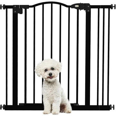 The gate is suitable for various settings, including doorways and stairways. The adjustable width allows it to fit openings ranging from 74cm to 80cm without an extension, and up to 87cm when a 7cm extension is added. Measuring the designated area before purchasing ensures that you achieve a perfect fit. This gate is designed to be safe, made from lead-free and non-toxic materials, offering a solid and reliable barrier for your pets.