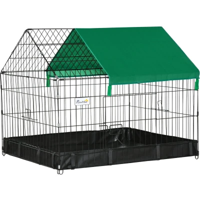 PawHut Rabbit Cage Guinea Pig Playpen Small Animal House for Kitties Puppies, w/Water Proof Oxford Roof Floor 90 x 75 cm