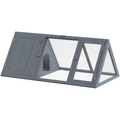 Tired of your pet's static enclosure and the daily hassle of cleaning and feeding? Your furry friend deserves fresh grass and a dynamic world, not a fixed, messy cage. This PawHut guinea pig hutch offers the solution. Its lightweight triangular frame moves easily for daily grazing, while two doors provide effortless access. The dual-zone design of this outdoor rabbit hutch gives them a cosy retreat and a spacious run, enhancing their daily life. Specifications: ● Colour: Grey ● Material: Fir Wood, Wire Mesh ● Overall Dimension: 114.5L x 52W x 45.5H cm ● Main House Dimension: 35W x 52D x 45.5H cm ● Run Box Dimension: 79.5W x 52D x 45.5H cm ● Door Size: 28.5W x 45.5H cm ● Internal Door Size: 16W x 19.5H cm ● Item Label: D51-166V01GY Features: ● Features a private sleeping house and a spacious run for natural behaviors ● Lightweight triangular design is easy to move for fresh grazing every day ● Two access doors with latches allow for easy cleaning and pet access ● Stable fir wood and