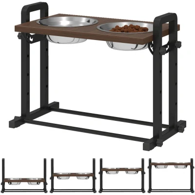 This PawHut raised dog bowl cares for your dog the way you do, from playful puppy days to senior companionship. Its adjustable height and tilt nurture a natural posture so every meal feels easy and comforting. Owners enjoy a tidier feeding space and stress-free moments watching their pets eat happily. Mealtime becomes a comfortable, healthy experience, strengthening your heartfelt bond with every bite. Specifications: ● Colour: Black, Brown ● Material: Steel, Stainless Steel, Plywood ● Overall dimensions: 48L x 26W x 36.5H cm ● Panel size: 43.5L x 25.5W cm ● Bowl size: Φ20 x 6H cm ● Bowl volume: 1.2 L ● Adjustable table height: 13 cm, 19.5 cm, 25.5 cm, 31.5 cm ● Adjustable table angle: 0°, 7.5°, 15° ● Item Label: D08-086V00BN Features: ● Elevated design promotes better posture, reducing strain on your dog's neck ● Three tilt angles (0°/7.5°/15°) offer customized comfort for better digestion ● Four adjustable heights (14-32cm) perfectly accommodate your dog as it grows ● Includes two