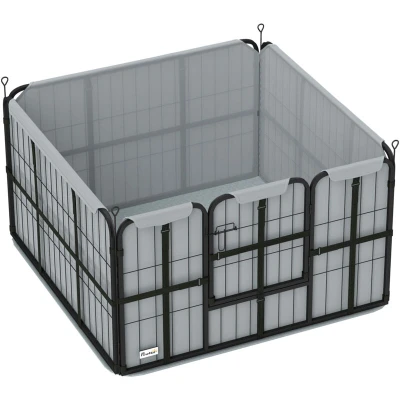 General description This PawHut whelping box offers comfort, security, and safety, ensuring that both mother and pups are happy and healthy. Designed with four panels, it can also serve as a playpen as puppies grow. The wind-resistant Oxford fabric surrounds the box, while the washable pad provides a clean, cozy space for pets inside, suitable for small and medium breeds. Technical specifications Colour: Black Material: Steel and polyester Overall dimensions: 60H x 102L x 102W cm Single panel dimensions: 60H x 100W cm Door size: 41H x 38W cm Whelping pad dimensions: 109L x 109W cm Ground stakes length: 69L cm Bar spacing: 5.5 cm Item label: D06-247V00BK Usage Can be used as a whelping box and a pet playpen. Features a door for easy access to the mother while keeping puppies securely inside. Easy to dismantle and store. Other information Includes four ground stakes for stability. Washable whelping pad included.