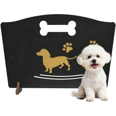 PawHut Wooden Dog Stopper, Freestanding Gate with Support Feet, Black