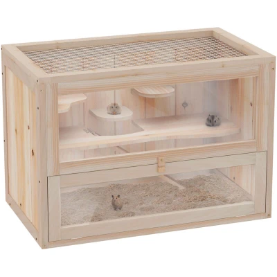 PawHut Wooden Hamster Cage Mouse Mice Rodent Small Animals Hutch Exercise Play House 60 x 35 42cm