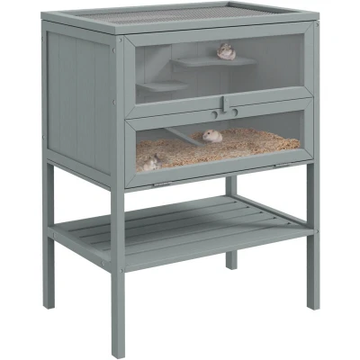 PawHut Wooden Hamster Cage with Storage Shelf, Small Animal Exercise Play House Openable Top, for Hamsters, Gerbils, 60 x 40 80 cm Grey
