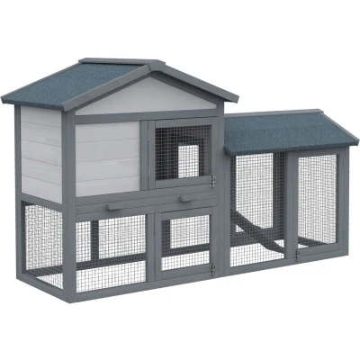 PawHut Wooden Rabbit Hutch Outdoor, Double Tier Guinea Pig Hutch, Small Animal House Water Resistant Roof Ramp 147 x 54 84 cm