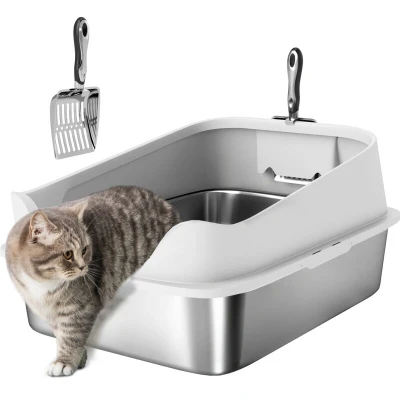 Hygienic stainless steel construction: The base of this stainless steel litter box resists bacteria and odours and non-sticky, ensuring a cleaner, fresher space where you and your cat can enjoy daily comfort together XL comfort for cats: Generously sized at 60.2L x 40.2W x 29.7H cm, this XL cat litter box allows your pet to dig and turn freely, providing a relaxed and stress-free toilet experience High-sided splash protection: With a 15 cm tall sides on this stainless steel cat litter tray keep litter and waste contained, reducing mess and making home cleaning easier and more convenient for busy owners Litter collection zone: A wide entrance with integrated sieve on the cat litter box captures stray litter from paws, helping to keep your floors tidy and your mornings feeling organised Robust stainless steel scoop included: The robust scoop attaches neatly to the stainless steel cat litter tray, allowing for quick, efficient daily cleaning and keeping your cat's area hygienic with minimal effort