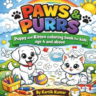 Paws & Purrs: Adorable Puppy and Kitten Adventures, Bold Easy Coloring Activity Book for Kids: Fun Playful Children Ages 4 above