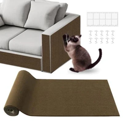 【CUSTOMIZABLE DIY PROTECTION】: Tired of protectors that don't fit? Our scratch mat can be easily cut to any shape with regular scissors. It's perfect for wrapping couch arms, guarding door frames, or even re-covering an old cat tree. You get total protection, exactly where you need it. 【STRONG & VERSATILE ADHESION】: The strong adhesive backing holds tight on almost any surface—wood, glass, tile, you name it. For fabric couches that need a little extra grip, we've included 10 small twist pins. Just a heads-up: it's best not to use the pins on genuine leather to prevent damage. 【A TEXTURE CATS LOVE (AND @@@CQ2ISyx0JwZJKMCwpkxfV1ir3P5InLVZ@@@ IS SAFE FROM)】: Made from a durable, carpet-like fiber that's tough enough for the sharpest claws. It gives your cat a super satisfying place to scratch, redirecting them from the furniture you love. Finally, a win-win for both of you. 【EASY, PEEL-AND-STICK INSTALL】: No tools, no fuss. Installation is a breeze: just cut it to size, wipe the surface clean, peel the backing, and press it on firmly. It's simple to get instant protection. 【REMOVES CLEANLY, NO MESS】: Change your mind? No problem. The protector peels right off without leaving behind sticky gunk or damaging your furniture. You get peace of mind knowing your surfaces will stay looking great.