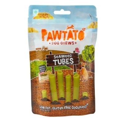 [ VEGAN DOG TREATS ] Made from sweet potato, rice, and mineral-rich seaweed, these vegan chews are a nutritious and hypoallergenic alternative to traditional meat-based treats. [ OCEAN MINERAL GOODNESS ] Seaweed provides a natural source of iodine and trace minerals that help support healthy skin, coat, and thyroid function. [ GENTLE & GRAIN-FREE ] Free from meat, wheat, dairy, and soya – perfect for sensitive dogs or those on plant-based diets. [ SUITABLE FOR ALL DOGS ] Great for small to large breeds over 4 months old. Ideal for training, rewarding, or daily chewing. [ RAW HIDE-FREE & ETHICAL ] Safe, digestible, and cruelty-free. Pawtato Tubes are approved by the Vegetarian & Vegan Societies and recognised by PETA for ethical excellence.