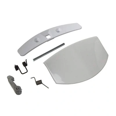 Replacement washing machine door handle kit Fits : AEG L12710, L14810, L16810 Series Non original compatible part, made from durable white plastic Contains handle, both springs, hook, screw plate and retaining rod Quality Paxanpax product