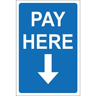 Pay here sign Self adhesive sticker 300mm x 200mm