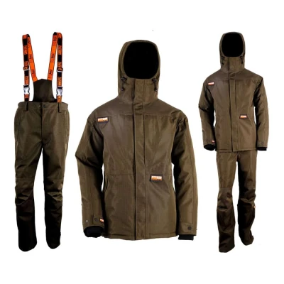 The PB Products Carp Suit rain suit offers active carp anglers excellent protection against rain and moisture thanks to a water column of 7000mm and a breathability of 5000g/m²/24h. The suit features buttons on sleeves and pants, high zippers at the bottom of the legs, and removable elastic straps for an optimal fit. The jacket has a light lining for extra warmth, and the pants are smooth lined for easy on and off. Extra abrasion-resistant fabric on shoulders, elbows, seat and knees ensures durability, allowing you to fish comfortably and dry even on cold mornings, evenings and nights.