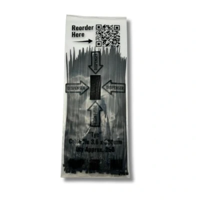 PBP Cable Ties, 3.6 x 300 mm, Pack of 250, Black with Dispenser