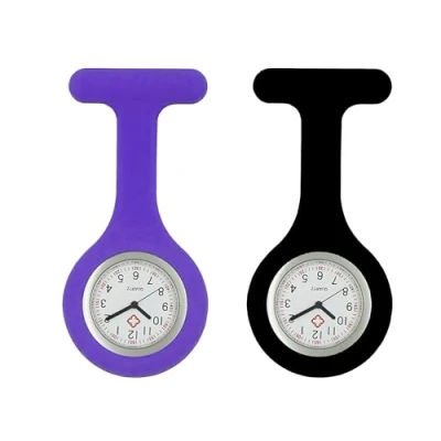 PCL Media ltd Nurses Fob Watch Brooch (Pack of Two) for Women The Health Care Industry Silicon (Black & Purple)