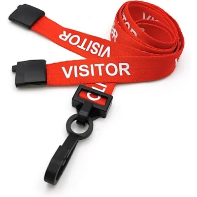 Best Quality Printed Visitor Lanyards You Get 50 Plastic Clip Visitor Lanyards made from quality nylon material These Visitor Lanyards Come With A Strong Plastic Clip Comes With A Single Safety Breakaway Clip so you ccan't get strangled making these Visitor Lanyards very Safe for visitors to wear. Each Visitor Lanyard Will Measure Approx 18 inches When Hanging. So anyone visiting your business will instantky stand out as a visitor. Visitor Is Printed Both Sides Of The Lanyard So Will Always Show Even If Twisted