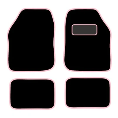 PCM Car Floor Mats for Universal or Van Tailored Heavy Duty 4PC Set Non Slip Carpet (PINK EDGING)